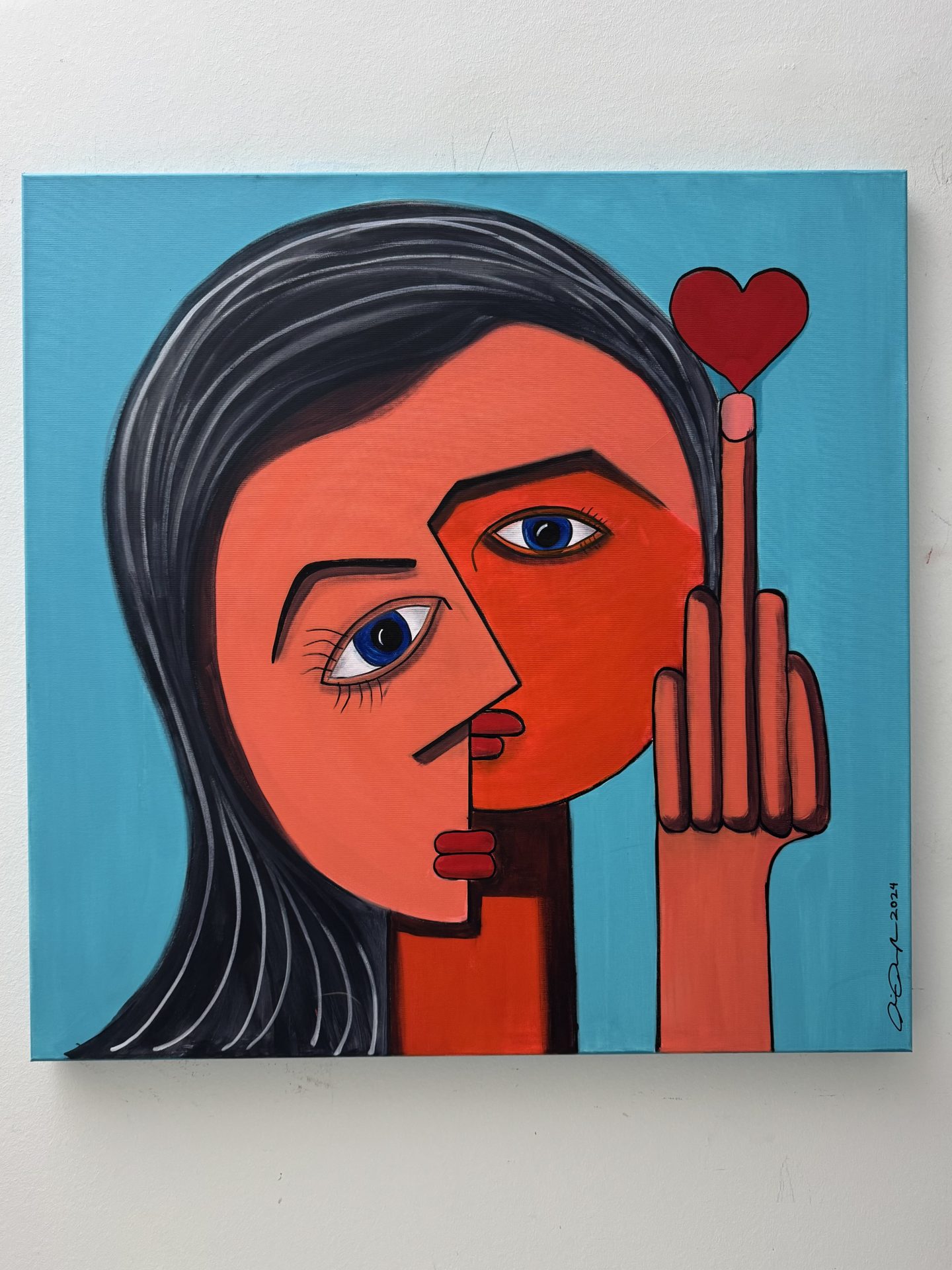 Ich arbeite oft mit Skizzen als Grundidee und übertrage das am liebsten in Acryl oder Mischtechnik auf eine Leinwand. Der Mensch steht im Mittelpunkt, denn mich interessiert und fasziniert: Die Gleichzeitigkeit von widersprüchlichen Gefühlen, wie Vertrauen und Misstrauen, Nähe und Intimität, Ordnung und Freiheit.